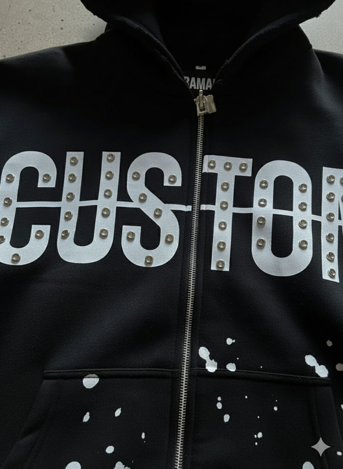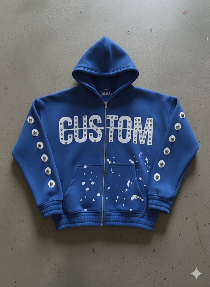 เสื้อฮู้ดดี้สตรีทแวร์ทรงบ็อกซี่แบบซิป ผ้าฟลีซออร์แกนิค 100% หนานุ่มพิเศษ ตกแต่งด้วยหมุด ทรงปกติ พร้อมสกรีนโลโก้ตามสั่ง