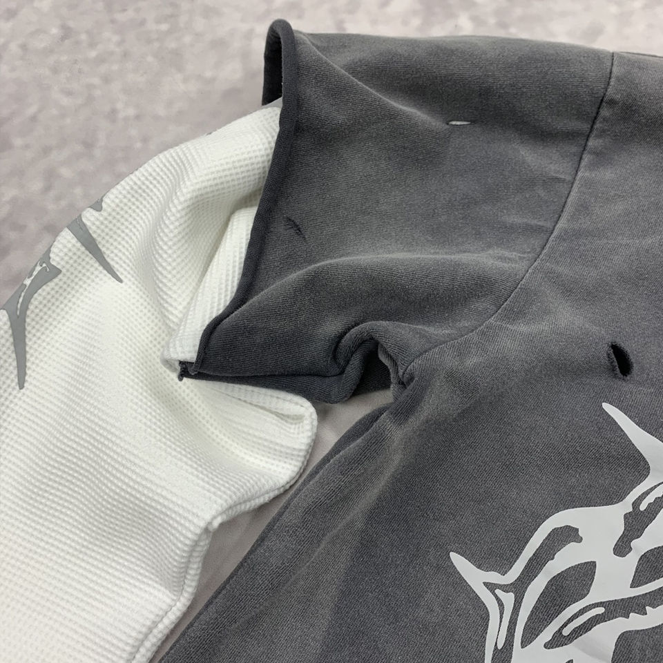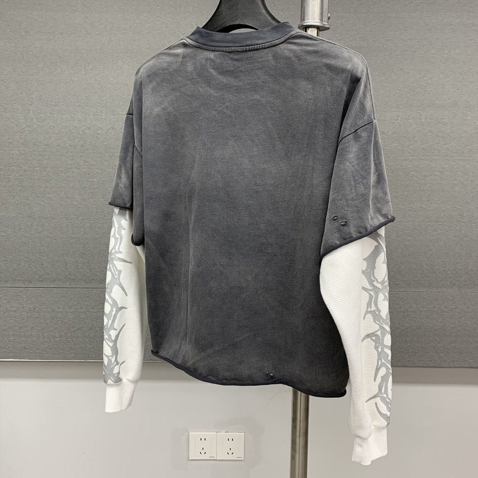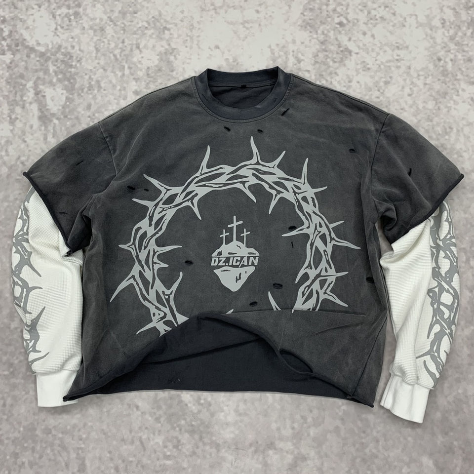 Custom Screen Print Men Boxy T Shirt 300gsm Cotton Washed Tshirt Streetwear Vintage Acid Wash Double Layer Long Sleeve T-Shirt
