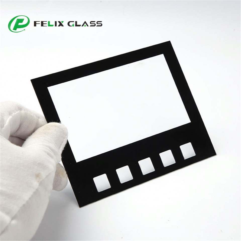 แผงกระจกนิรภัยแบบโปร่งแสงด้านเดียวสีดำพิมพ์ลายตามสั่งสำหรับหน้าจอสัมผัส ป้องกันหน้าจอ