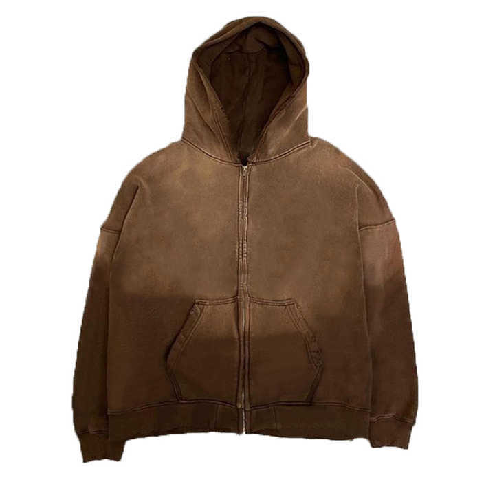 เสื้อฮู้ดดี้ผู้ชายแบบซิปเต็มตัว ผ้าคอตตอนผสม ทรงเบสิก ลวดลายสกรีนปักเอง ซักย้อมสีแบบแอซิดวอช น้ำหนักมาก รุ่นใหม่