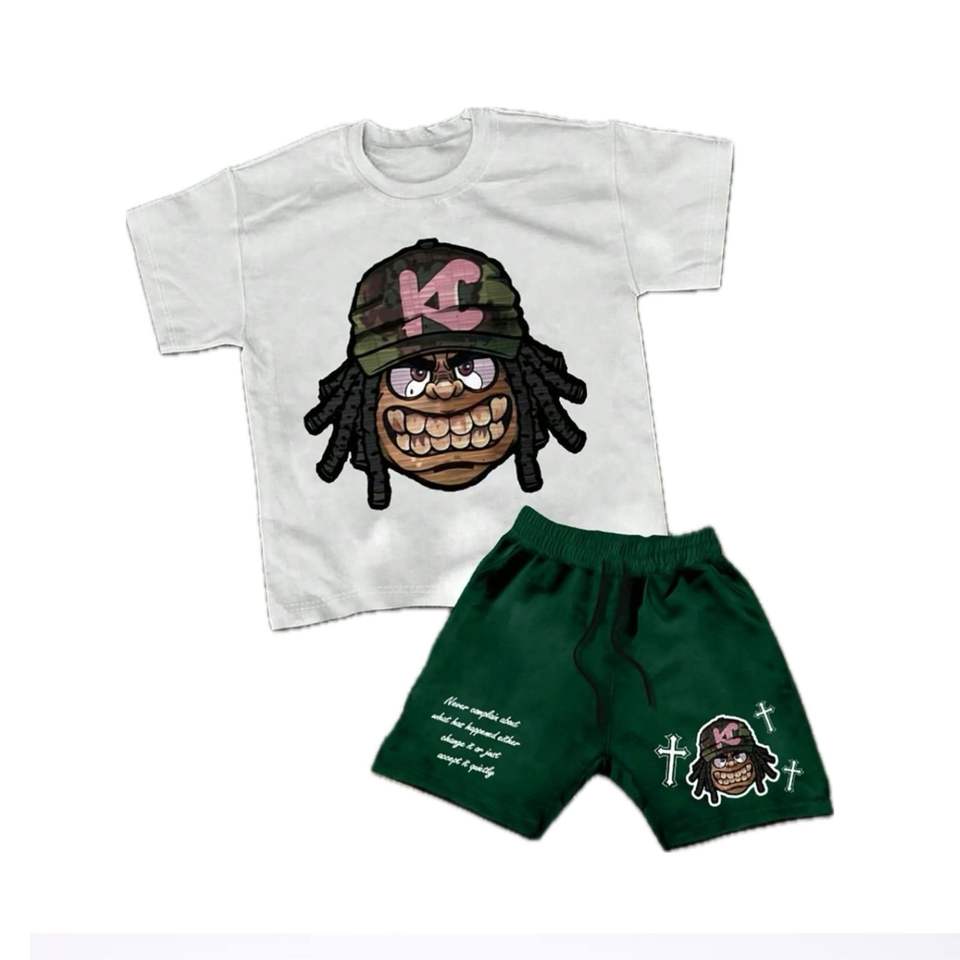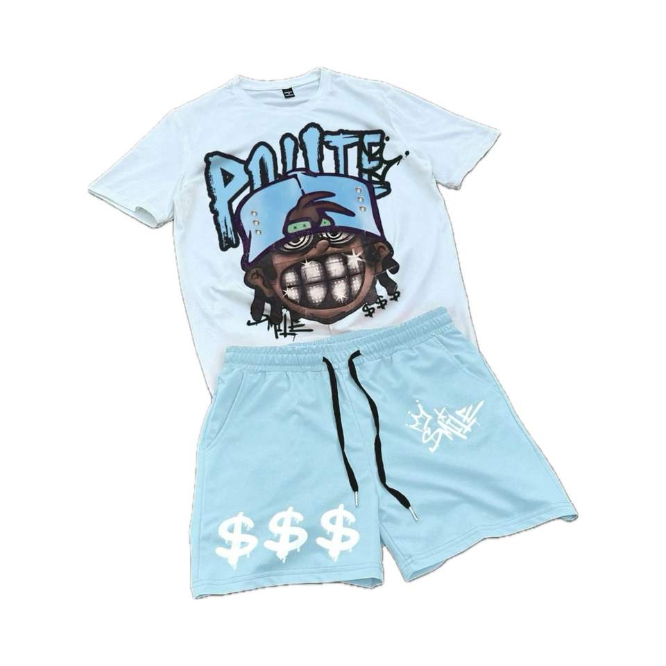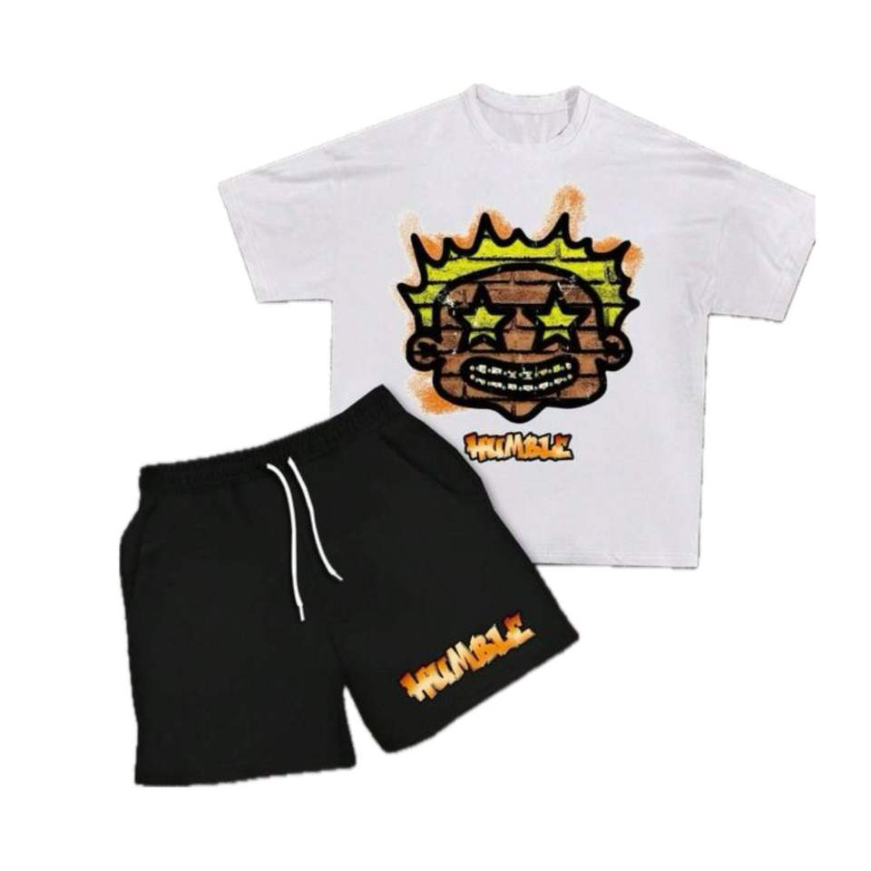 ชุดสองชิ้นสำหรับผู้ชายกางเกงขาสั้นพิมพ์ลายตัวอักษรเอวยางยืดพิมพ์ลายกราฟิกสำหรับสตรีท