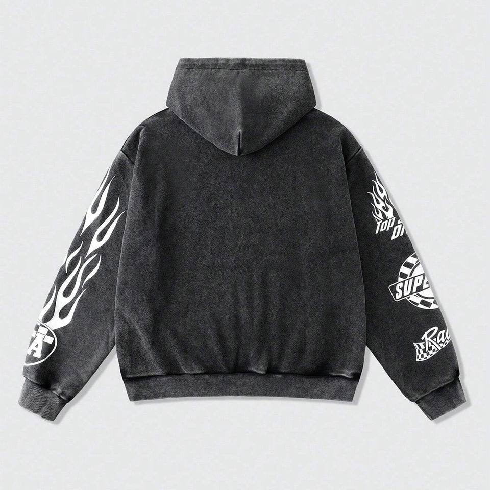 เสื้อฮู้ดดี้วินเทจพิมพ์ลายสกรีนแบบกำหนดเอง ยูนิเซ็กส์ แขนยาว สไตล์ลำลอง ลุคทำสีซีดแบบวินเทจ ทรงหลวม เหมาะสำหรับแฟชั่น