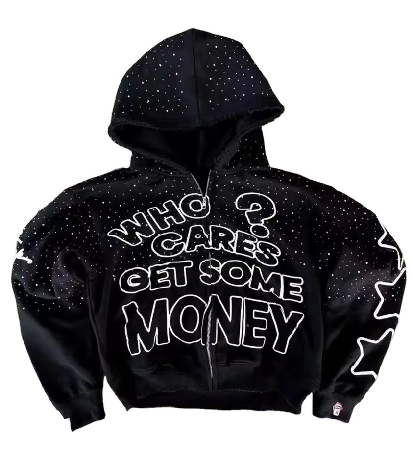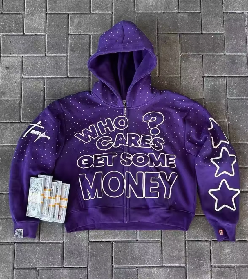 เสื้อมีฮู้ดผ้าฟรนซ์มีซิปรูดรูดซิปมีฮู้ดสำหรับผู้ชายผ้าฝ้ายเทอร์รี่พิมพ์ลายกราฟิก2025