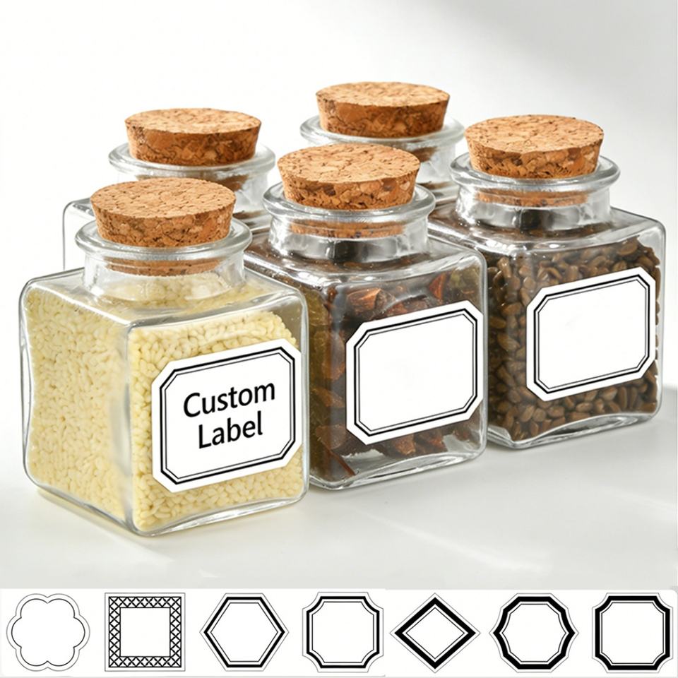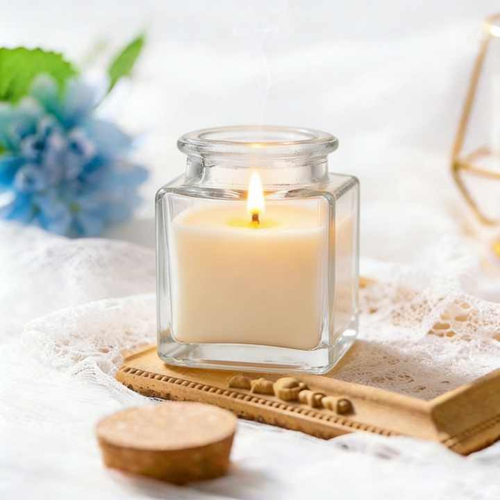 ขวดแก้วเปล่าทรงสี่เหลี่ยมขนาด 50 มล. พร้อมฝาไม้ สำหรับใส่เครื่องเทศ เมล็ดกาแฟ เทียน ของชำร่วยงานปาร์ตี้ พร้อมบริการสกรีนโลโก้ตามแบบ