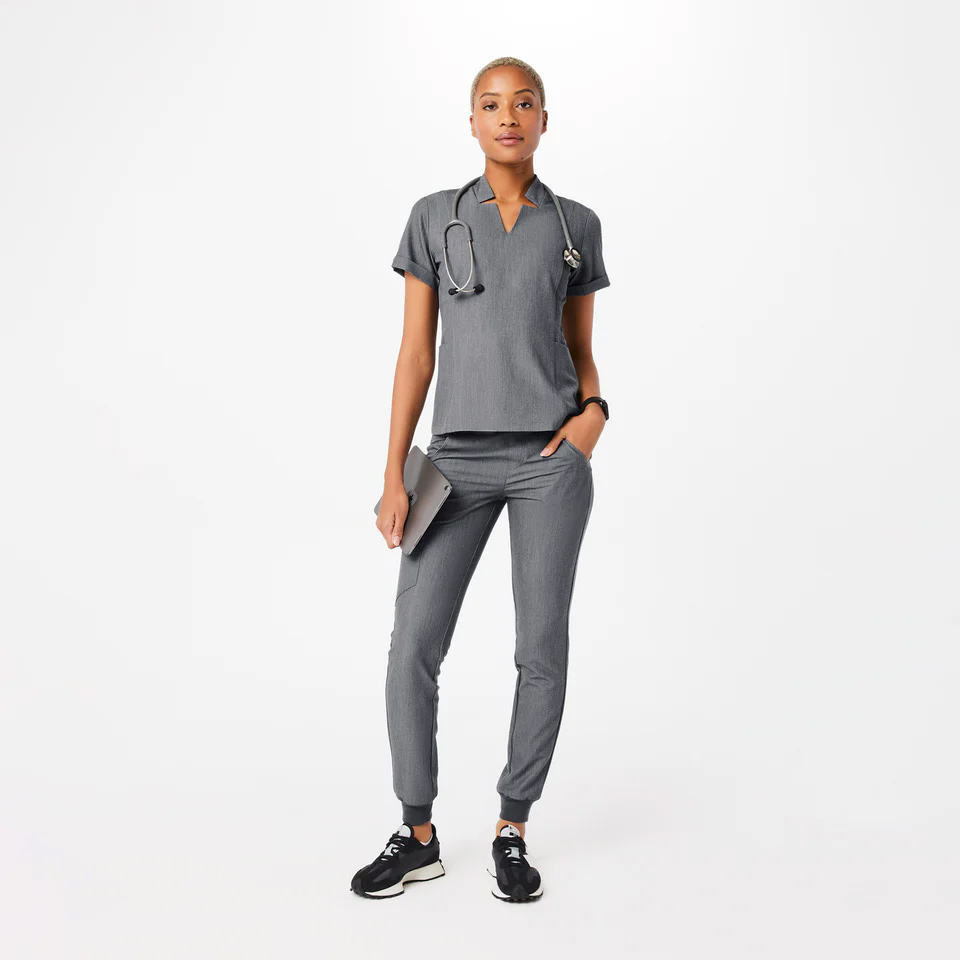 ชุดยูนิฟอร์มพยาบาลแบบจั๊มสูทผ้าทวิลผสมคอตตอนยืดหยุ่นสำหรับผู้หญิง ป้องกันริ้วรอย