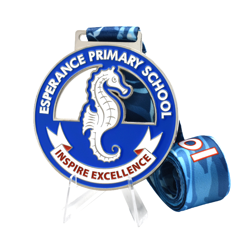 เหรียญรางวัลโรงเรียนลายม้าน้ำแบบกำหนดเอง รางวัลกีฬาโรงเรียนประถม พร้อมสายคล้องคอ ป้องกันน้ำ UV สำหรับกิจกรรมทางการศึกษา