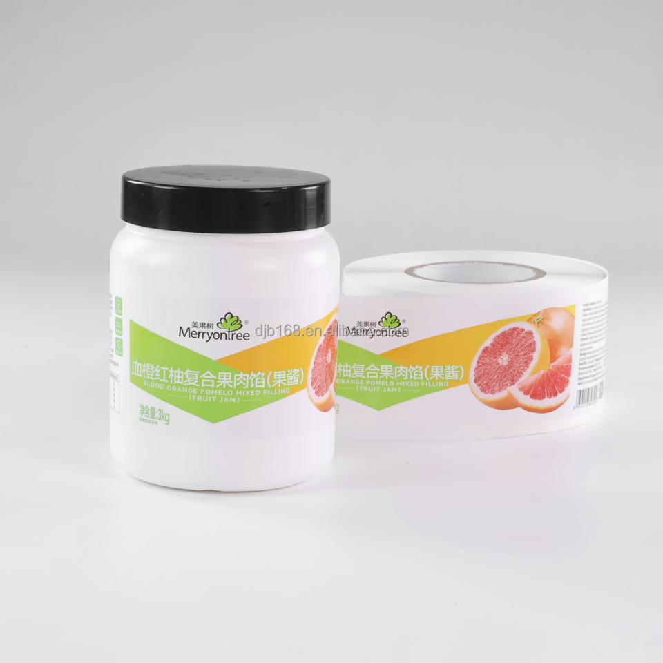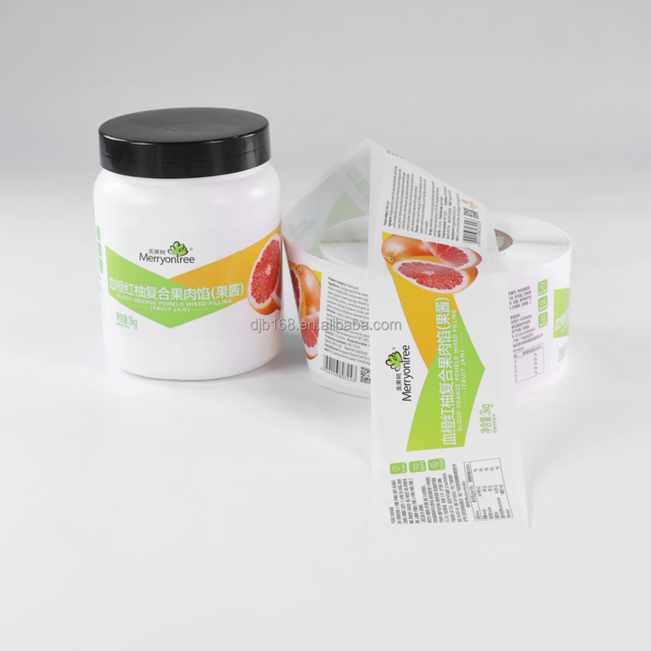 ฉลากบรรจุภัณฑ์แบบมีกาวในตัวฉลากแบบม้วนสติกเกอร์พิมพ์แบบกันน้ำขวดน้ำผลไม้ฉลากความปลอดภัยสำหรับบรรจุอาหาร