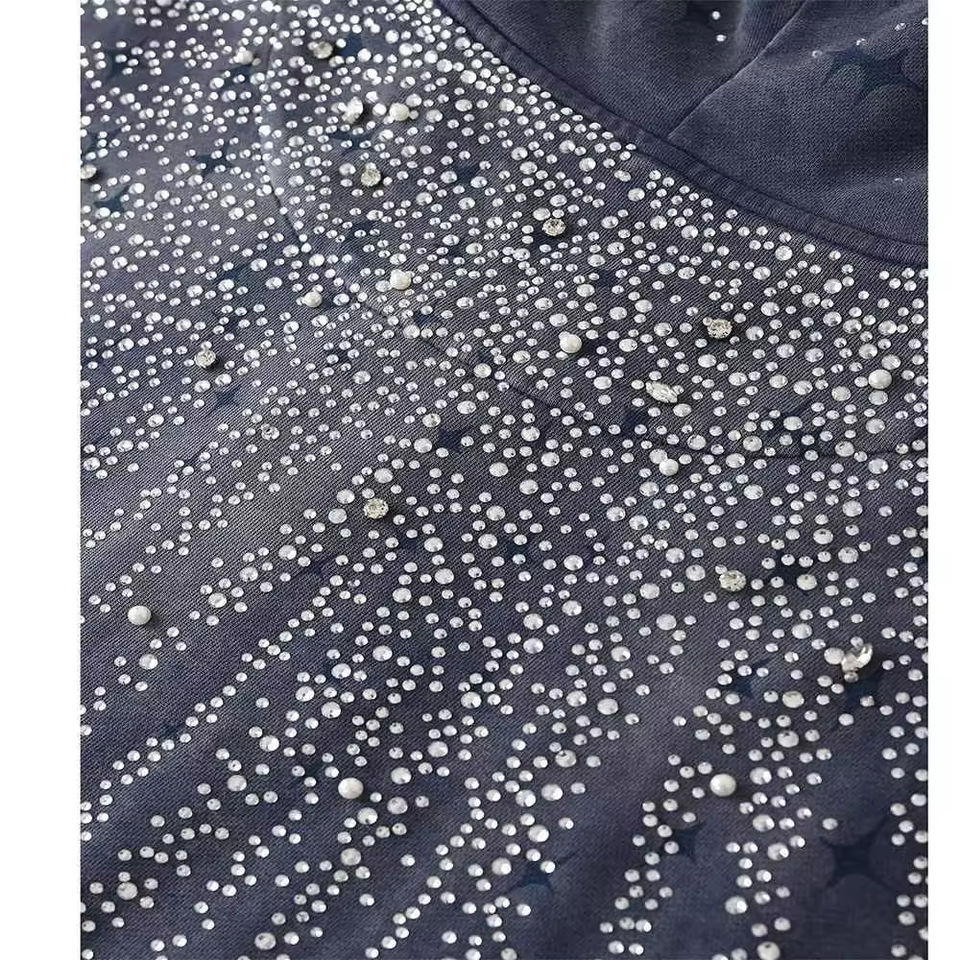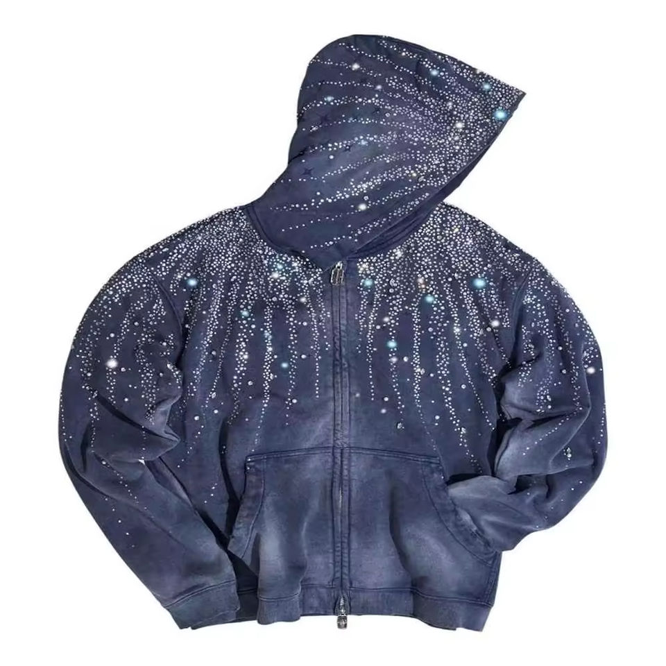 เสื้อฮู้ดแบบสวมศีรษะสำหรับผู้ชายเสื้อฮู้ดแบบสวมหัวมีฮู้ดลายพลอยเทียมออกแบบได้ตามต้องการ