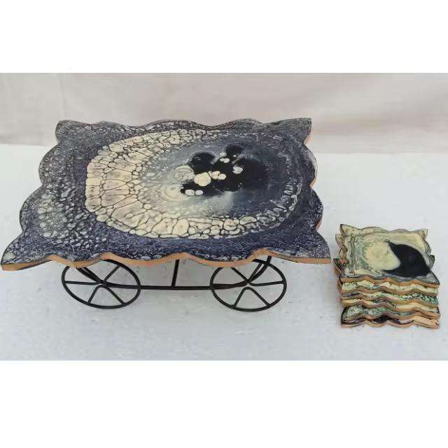 แผ่นรองแก้วสี่เหลี่ยม4ชิ้นจากอินเดียแผ่นหินวอลนัทแผ่นรองแก้วกาแฟแบบกำหนดเองในครัวงานแต่งงาน