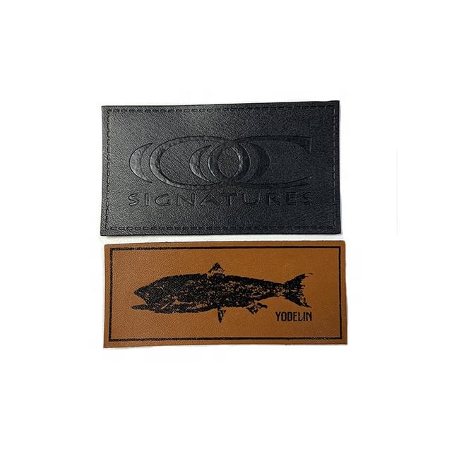 ป้ายหนังเย็บติดเสื้อผ้า หมวก บีนนี่ กางเกงยีนส์ ปักโลโก้ ป้ายหนังสีดำ น้ำตาล รีดติดเสื้อผ้า หมวก เสื้อ อุปกรณ์ตกแต่ง