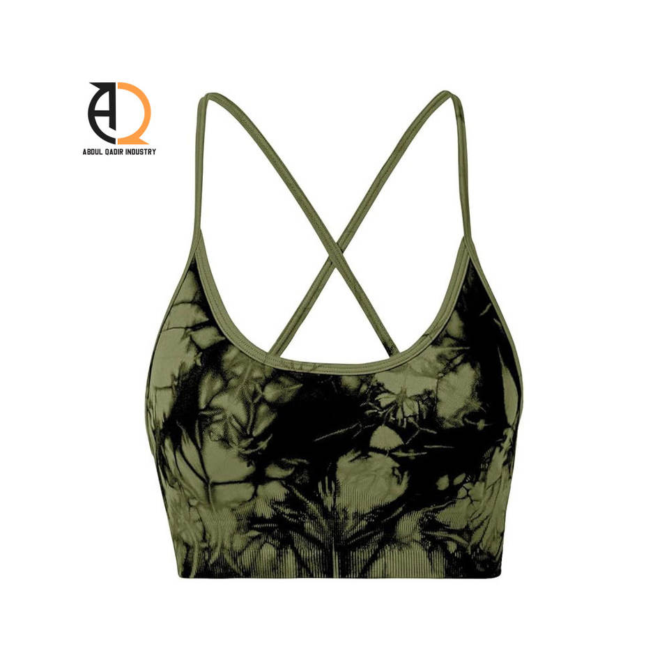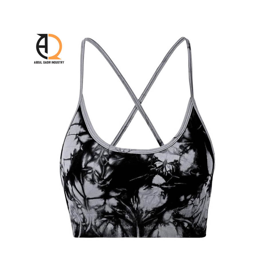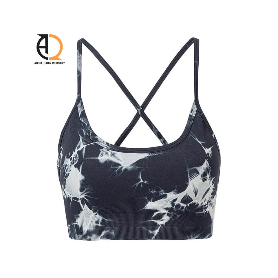 เสื้อชั้นในกีฬาโยคะแบบมีสายรัดกระชับพิเศษสำหรับผู้หญิง พร้อมโลโก้ด้านหน้า ผลิตจากวัสดุสแปนเด็กซ์/ไนลอน