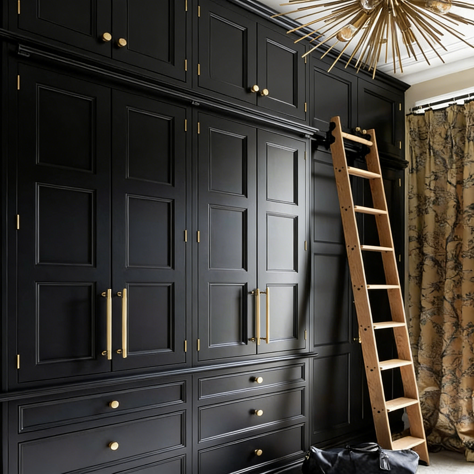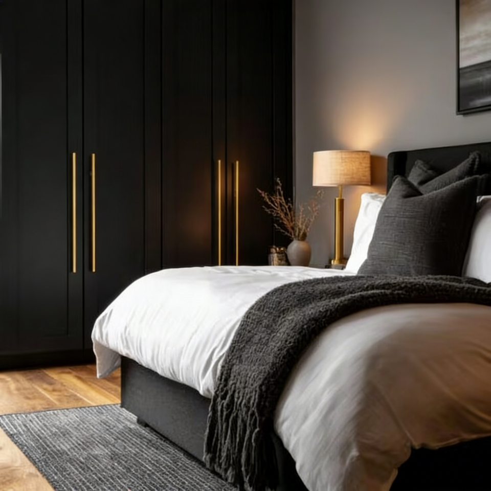 ตู้เสื้อผ้าไม้จริงสีดำด้านสไตล์เชคเกอร์แบบกำหนดเอง, เฟอร์นิเจอร์ห้องนอนสไตล์ฝรั่งเศสพร้อมบานพับปิดแบบนุ่มนวล
