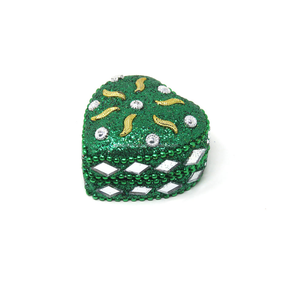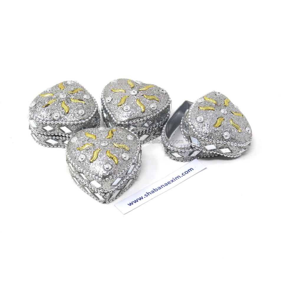 กล่องใส่ยาแบบกำหนดเองรูปทรงพิเศษ พร้อมกล่องเก็บเครื่องประดับประดับลูกปัดวิบวับ กล่องของขวัญรูปหัวใจแบบพกพา งานฝีมืออินเดีย