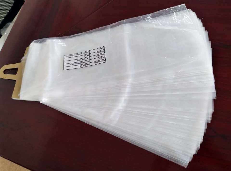 ถุงประตู HDPE LDPE พลาสติกใสรูปร่างแบบกําหนดเองพร้อมไม้แขวนกระดาษสําหรับบรรจุภัณฑ์หนังสือพิมพ์