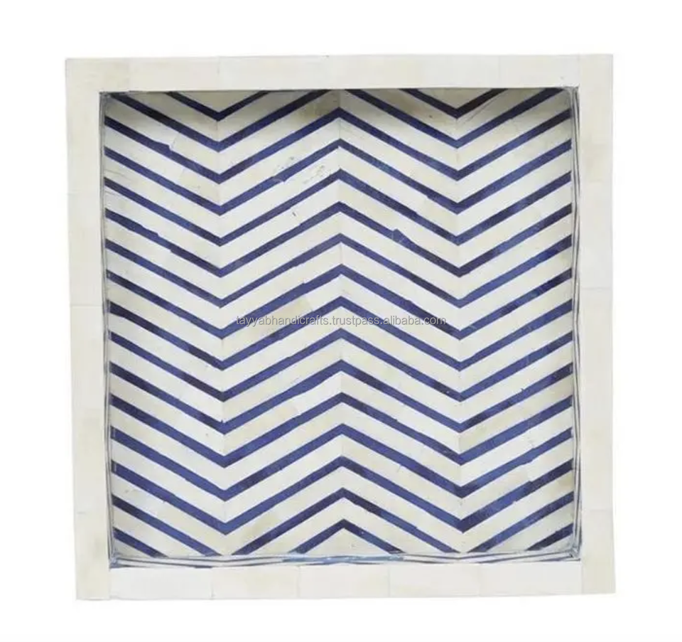 ถาดเสิร์ฟไม้ฝังกระดูกทรงพิเศษ ทำมือ หลายสี ดีไซน์ทันสมัย