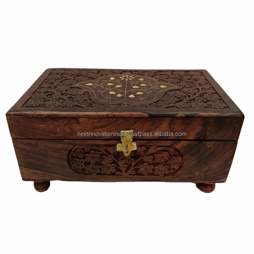 กล่องบรรจุภัณฑ์เครื่องประดับไม้ทรงสี่เหลี่ยมผืนผ้าแบบกำหนดเองจากอินเดียดีไซน์ทาสีพับเก็บได้ฟังก์ชันการทำงานที่หลากหลาย