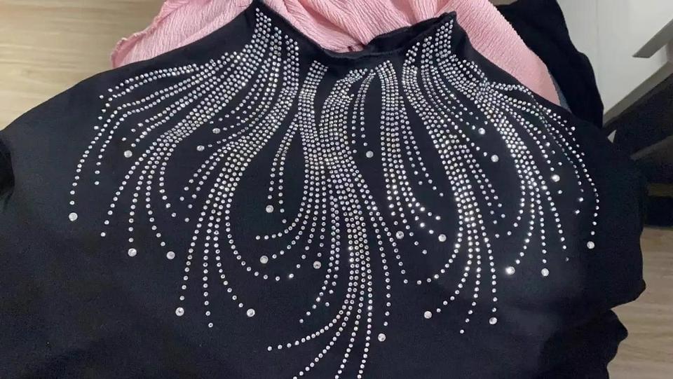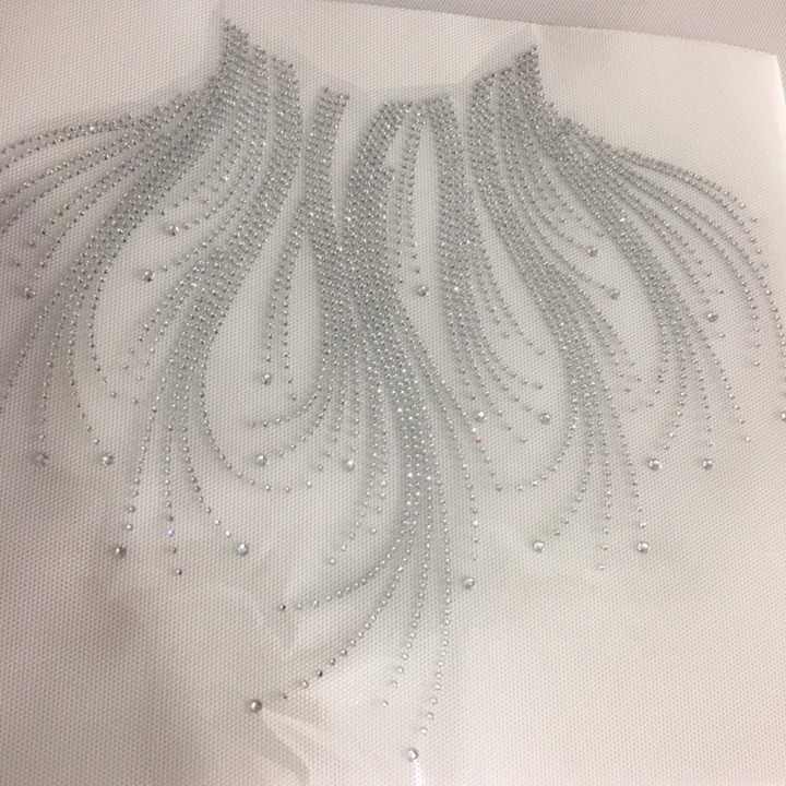 ลวดลายแก้วคริสตัลแวววาวแบบกำหนดเองสำหรับเสื้อยืดตกแต่งเสื้อผ้าแบบทำมือศิลปะการปะติดขอบเสื้อลายรอยสักคริสตัล