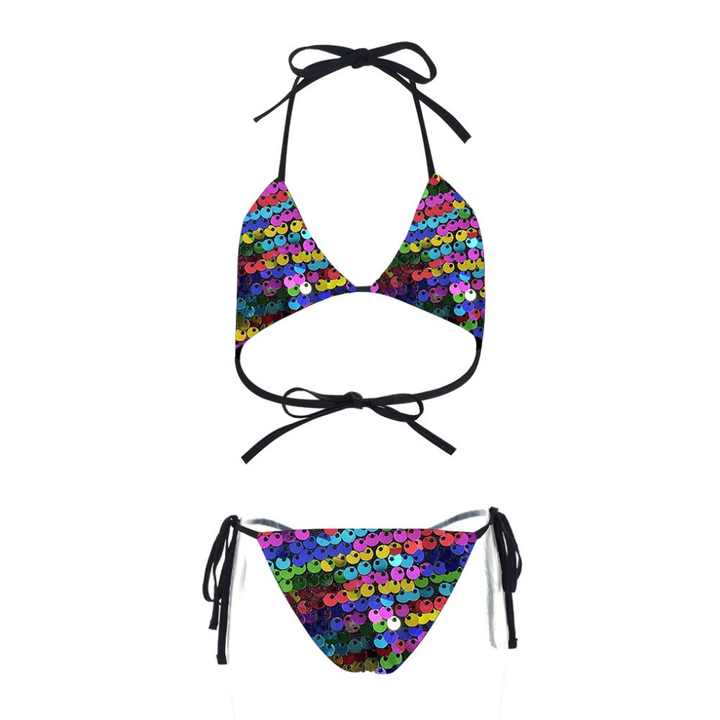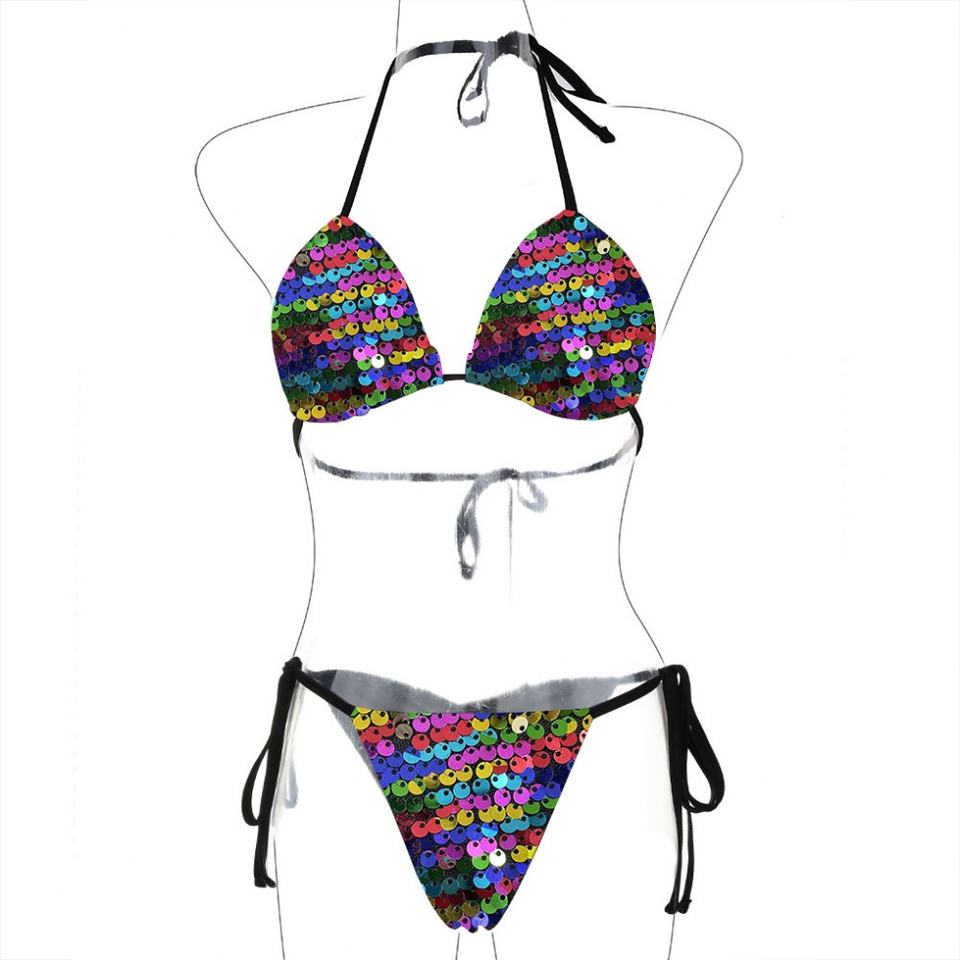ชุดว่ายน้ำบิกินี่ผู้หญิงแบบเซ็กซี่ประดับเลื่อมวิบวับ 2 ชิ้น สายรัดจีสตริง ชุดชายหาดสำหรับผู้หญิง