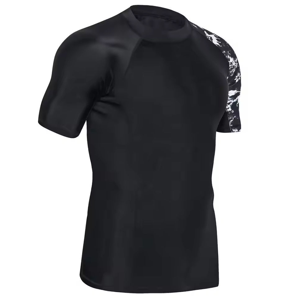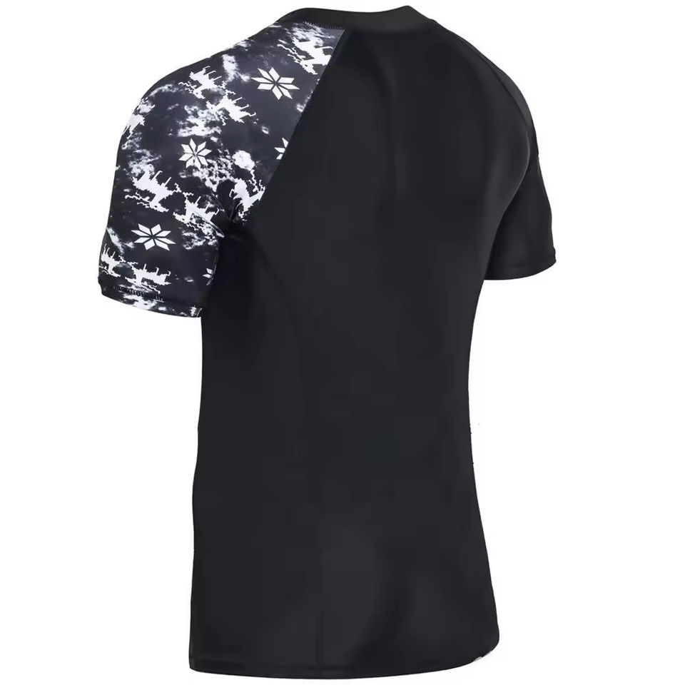 เสื้อรัดกล้ามเนื้อแขนสั้นระบายอากาศสำหรับผู้ชาย MMA Rash Guard ป้องกันรังสียูวี ผ้ายืดสแปนเด็กซ์/โพลีเอสเตอร์ 180 กรัม พิมพ์ลายซิลค์สกรีน
