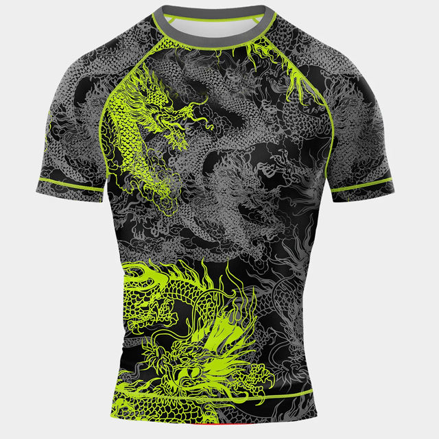 เสื้อรัดกล้ามเนื้อแขนสั้นพิมพ์ลายโลโก้กีฬาโต้คลื่น MMA BJJ แบบซับลิเมชั่นสำหรับยิวยิตสู ออกแบบเสื้อรัดกล้ามเนื้อของคุณเองได้