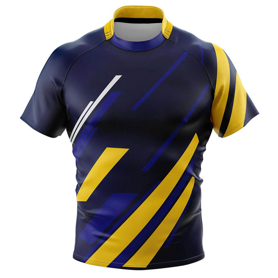 เสื้อรักบี้แขนสั้นแบบกำหนดเอง ผ้าโพลีเอสเตอร์ยืดหยุ่น พิมพ์ลายชื่อและหมายเลขผู้เล่นแบบ Sublimated