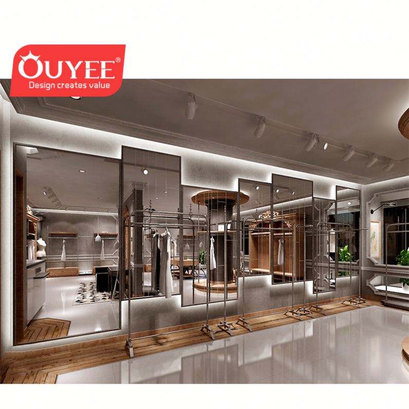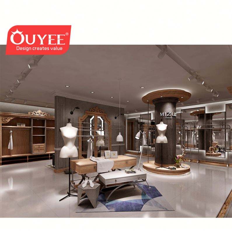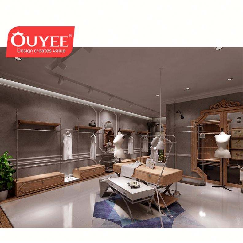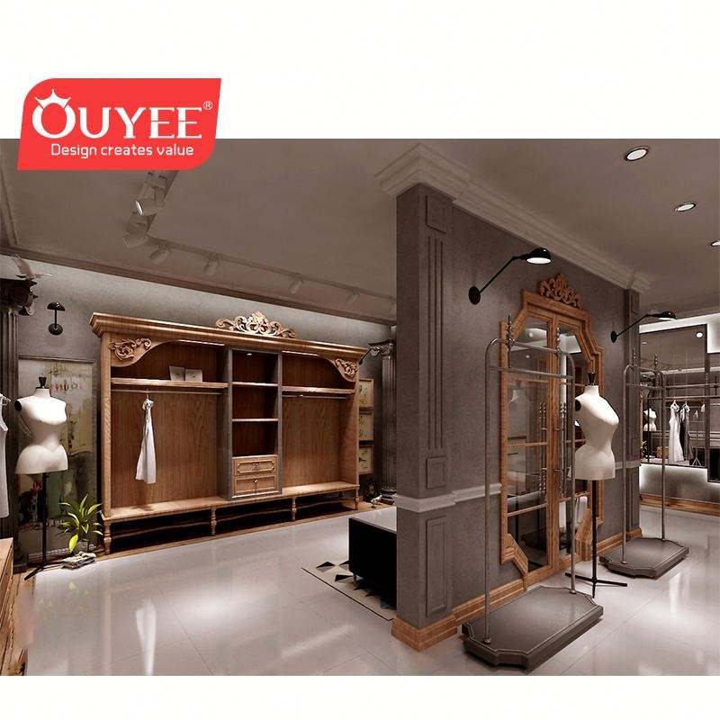 การออกแบบตกแต่งภายในโชว์รูมของผู้หญิงการออกแบบร้านเสื้อผ้าที่ทำจากไม้การตกแต่งร้านค้าขายปลีก