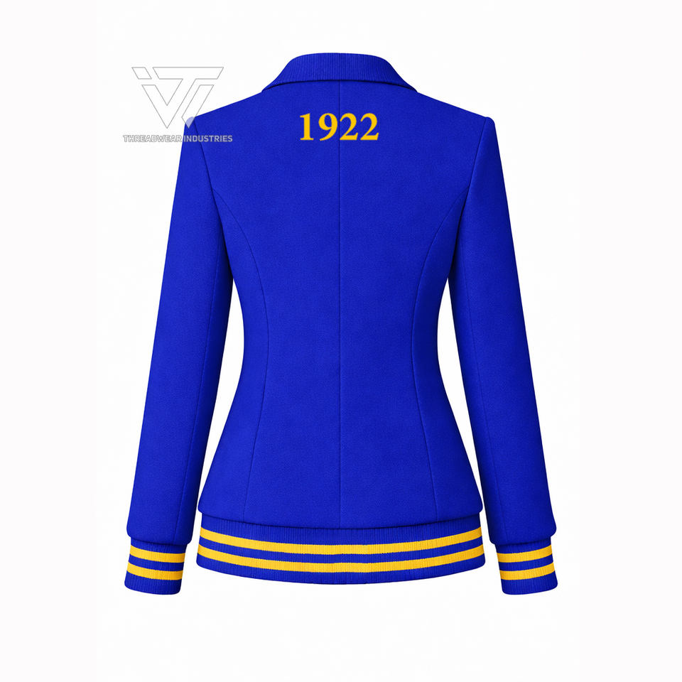 เสื้อเบลเซอร์แบบวาร์ซิตี้ปักลายสวยงามของชมรมซิกมาแกมมาโร พร้อมเครื่องประดับแบบกรีก