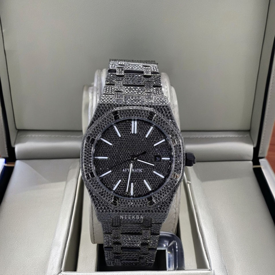 นาฬิกาเพชรโมอิสสีดำทั้งหมดของผู้ชายนาฬิกาเพชรแฮนด์เมด100% จากอินเดียลายตามสั่ง