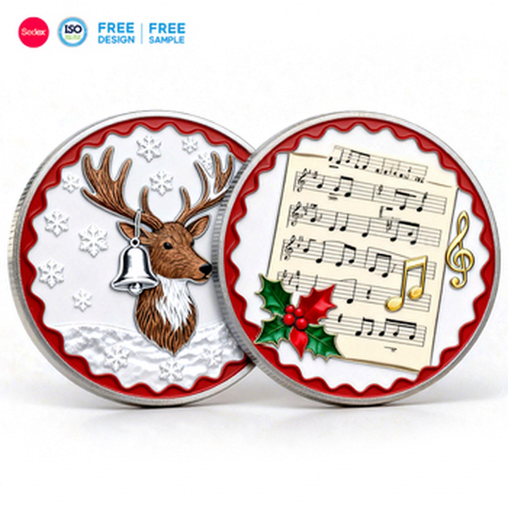ชุดรูปแบบโลหะสีเงินสำหรับเทศกาลคริสต์มาสงานแกะสลักเหรียญงานพิมพ์ด้วยเลเซอร์เคลือบผิวด้วย UV ของที่ระลึกเหรียญที่ท้าทาย