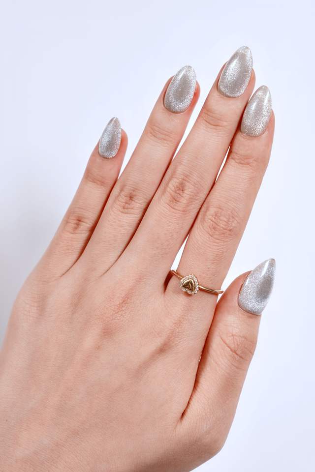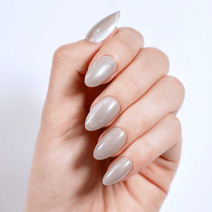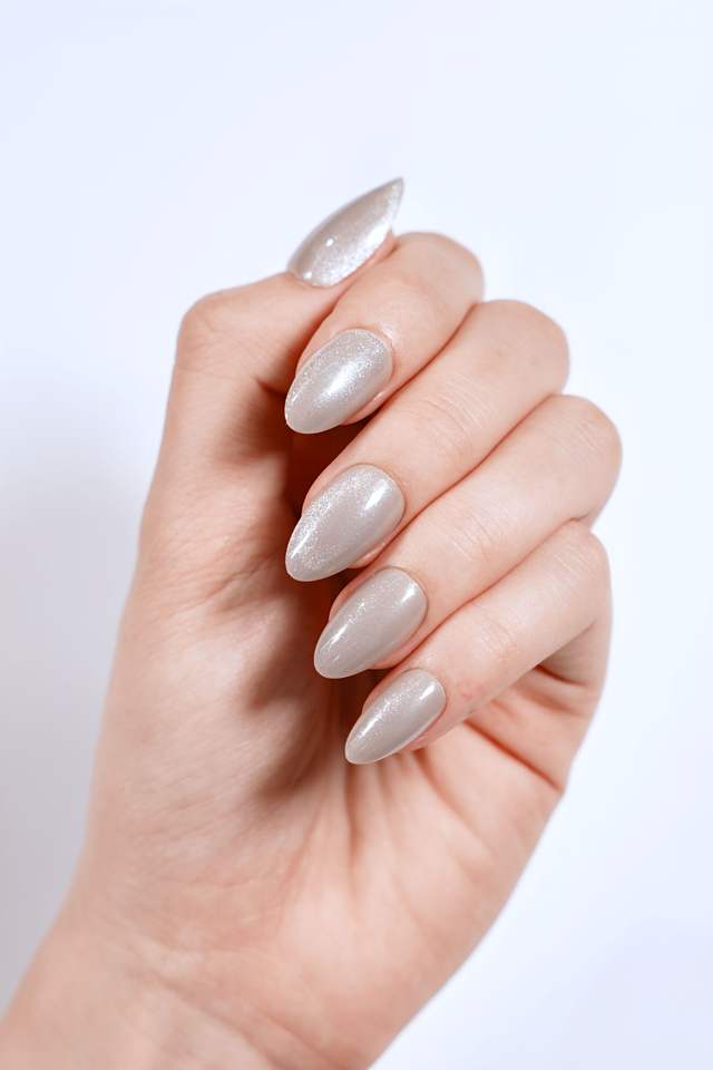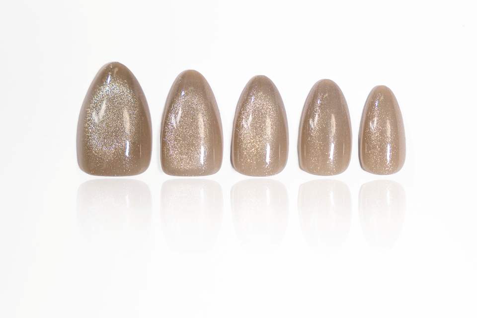 เล็บปลอม ABS สีเงินกลิตเตอร์แบบสั่งทำ ขายส่งจากโรงงาน รับผลิตแบบ OEM ODM สีแชมเปญประกายวิบวับ รูปทรงอัลมอนด์ ปั๊มลายทอง ความยาวปานกลาง