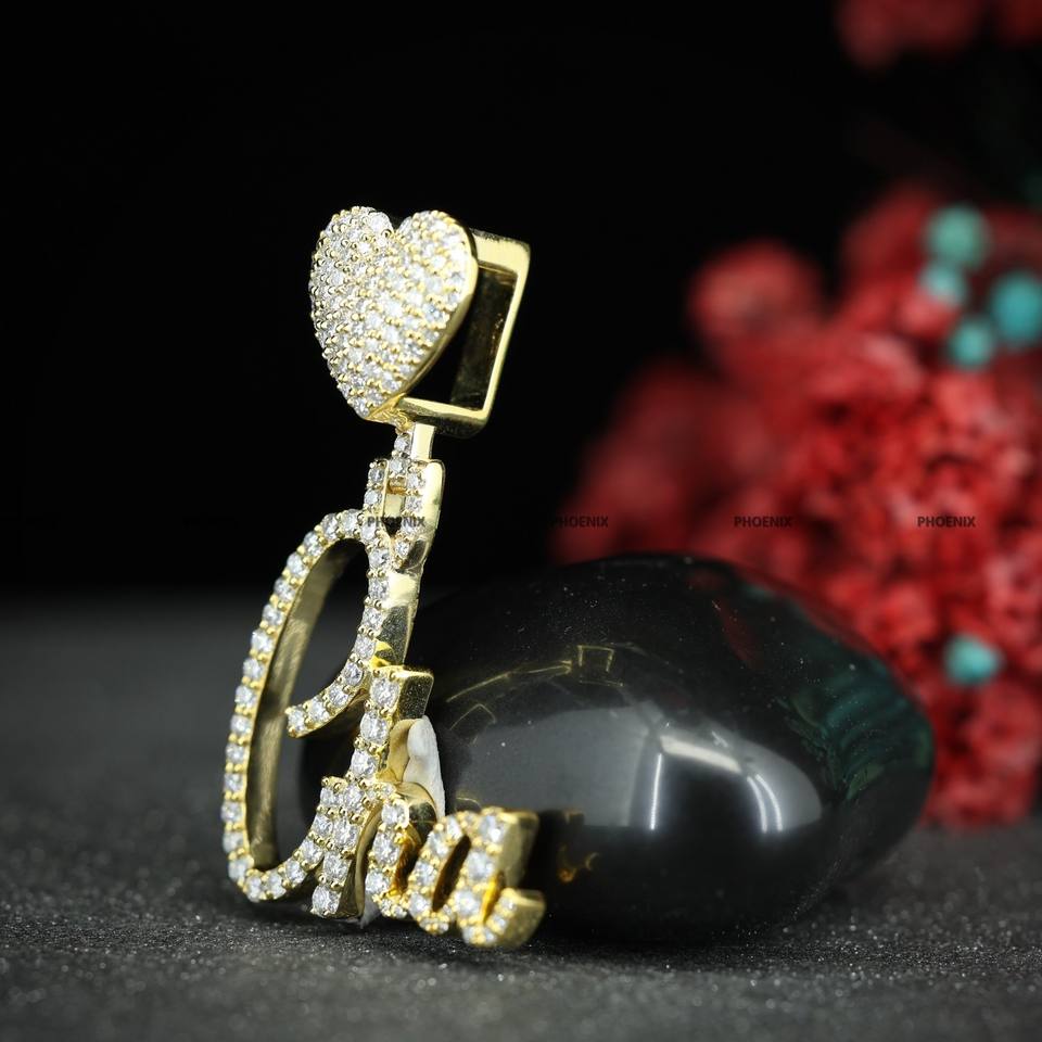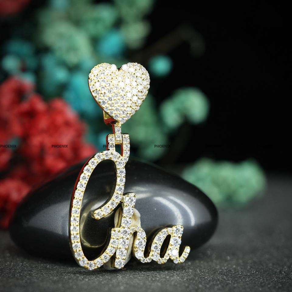 จี้ชื่อชุบทองคำแท้สีเหลืองแบบเรียบง่าย ประดับเพชรโมอิสซาไนต์ทรงกลม สำหรับงานแต่งงาน สำหรับผู้ชายและผู้หญิง โดยบริษัทฟีนิกซ์ เอ็นเตอร์ไพรส์