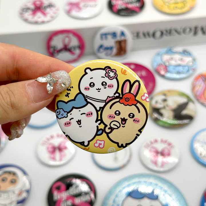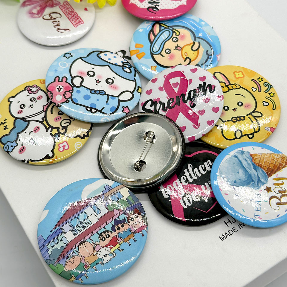 ป้ายโลหะกลมแบบกำหนดขนาดเอง 1 นิ้ว 25 มม. 32 มม. 58 มม. สำหรับพิมพ์โลโก้ ป้ายติดเสื้อแบบต่างๆ