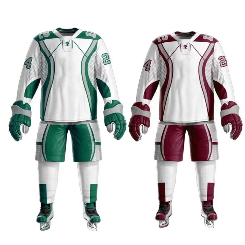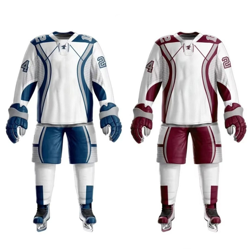 ชุดฮ็อกกี้น้ำแข็งทำจากโพลีเอสเตอร์ชุดระบายอากาศใส่สบายสำหรับผู้ใหญ่ชุดฮ็อกกี้น้ำแข็ง100% ในสต็อก