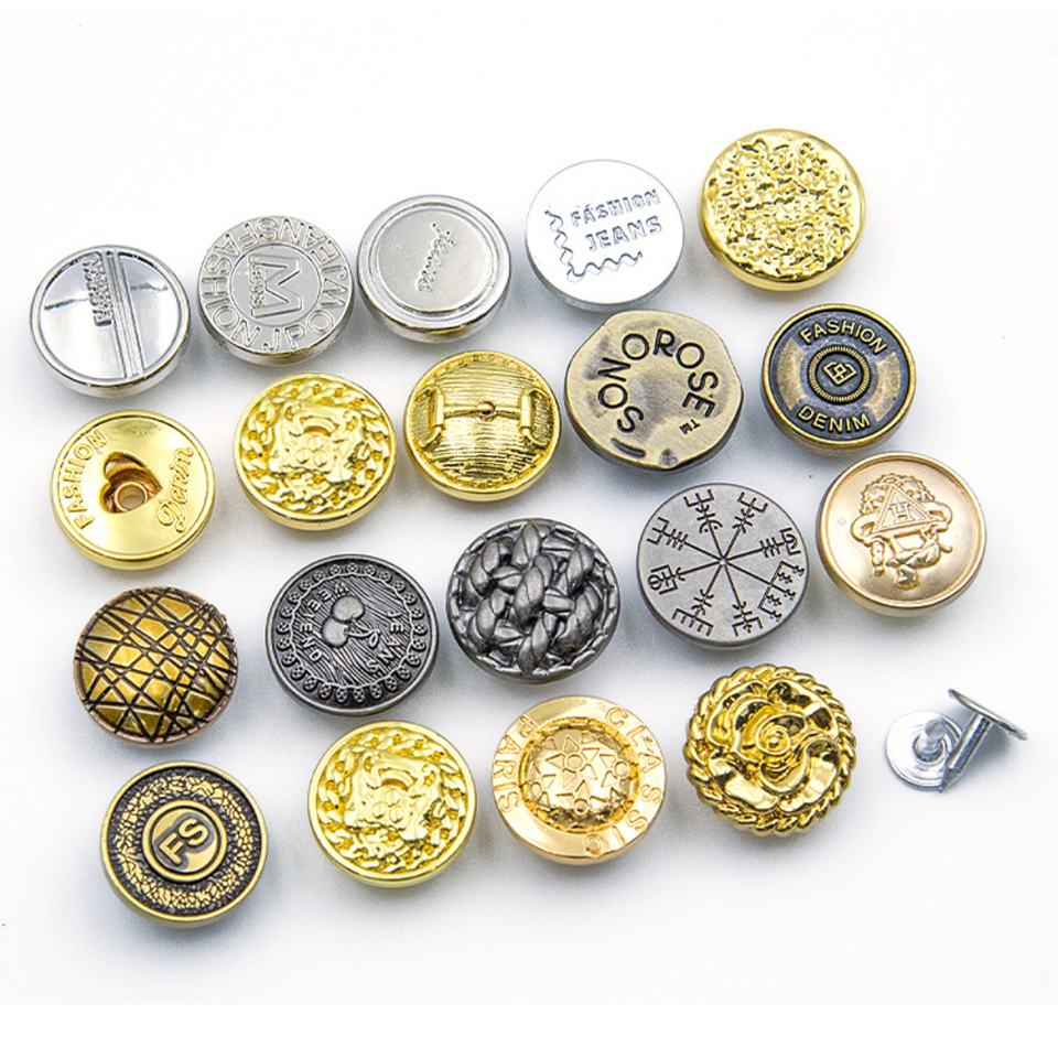 หมุดโลหะตกแต่งเสื้อผ้า ขนาดสั่งทำพิเศษ 15 มม. 17 มม. ทำจากโลหะผสมสังกะสีสีทอง พร้อมโลโก้สั่งทำ สำหรับยีนส์และเสื้อผ้า