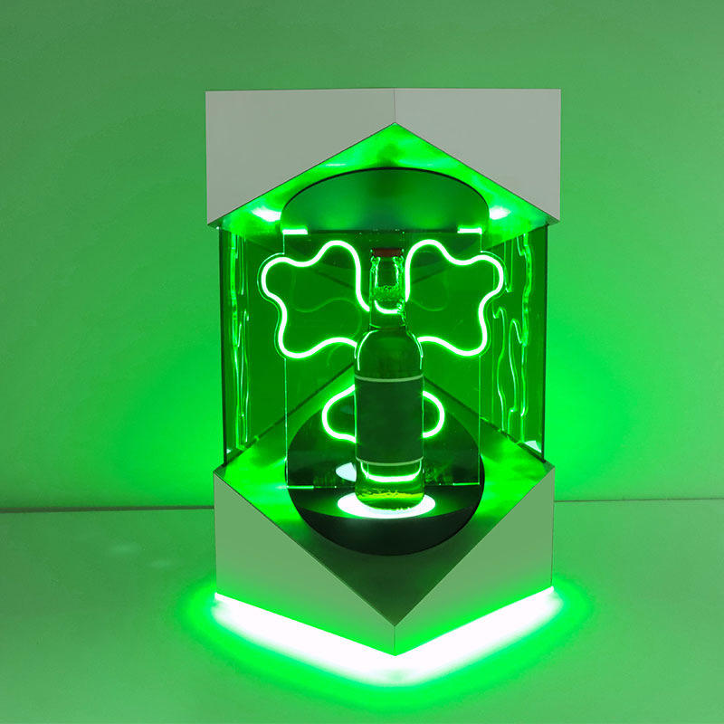 ที่ตั้งโชว์เครื่องสำอางน้ำหอมทำจากอะคริลิคพร้อมไฟแอลอีดีโฆษณาดิจิทัลสีและโลโก้ตามสั่งโดย Rina TECH