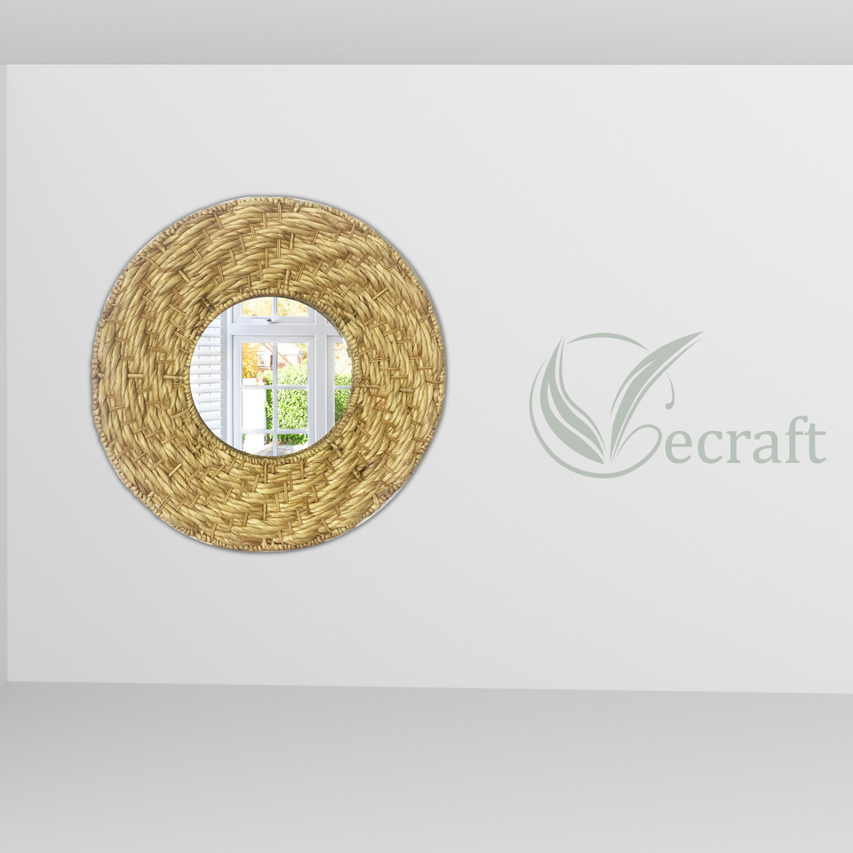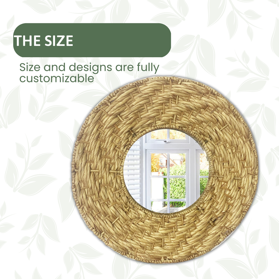 กระจกติดผนังกระจกทรงกลมทำด้วยมือสไตล์โบราณดีไซน์ผักตบชวาธรรมชาติสำหรับการตกแต่งภายในที่ทันสมัยแบบชนบท