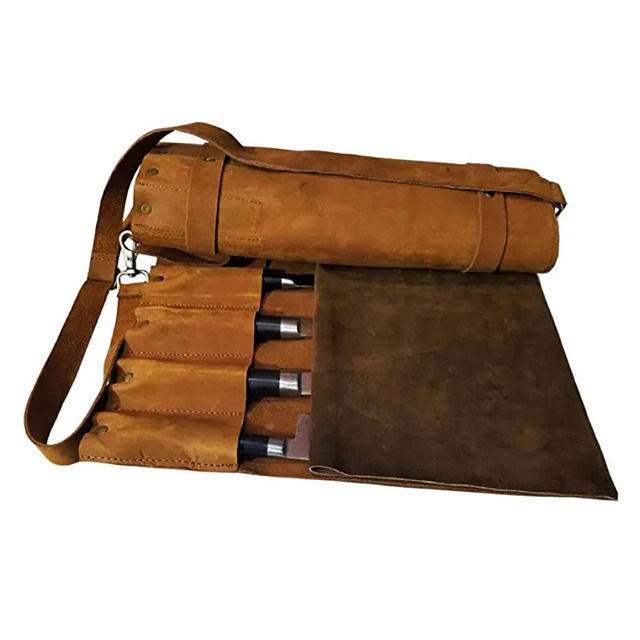 กระเป๋าใส่มีดหนังแบบสั่งทำได้ กระเป๋าใส่มีดหนังบุซับในนุ่ม กระเป๋าใส่มีดหนังปิดด้วยหัวเข็มขัดอย่างแน่นหนา