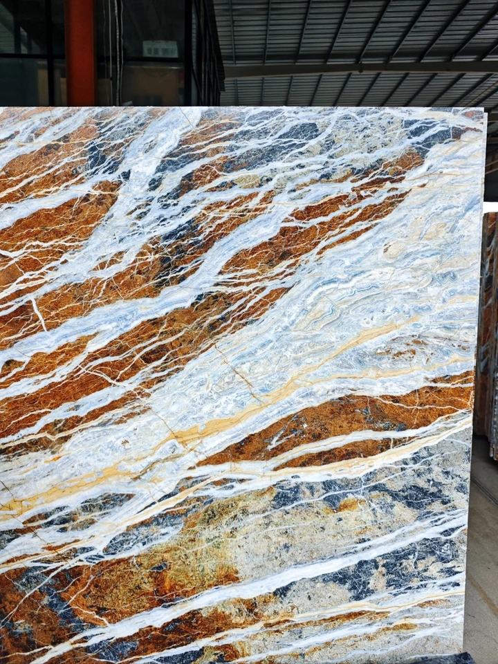 กระเบื้องหินอ่อนสีน้ำเงินเดนิมขัดเงาขนาดสั่งทำ ดีไซน์ทันสมัยมีสไตล์ สำหรับเคาน์เตอร์ทันสมัย แผ่นผนังตกแต่ง และพื้น