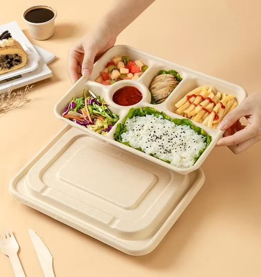 กล่องอาหารกลางวันทำจากอ้อยแบบใช้แล้วทิ้งย่อยสลายได้ทางชีวภาพไมโครเวฟสำหรับอาหารกลับบ้าน
