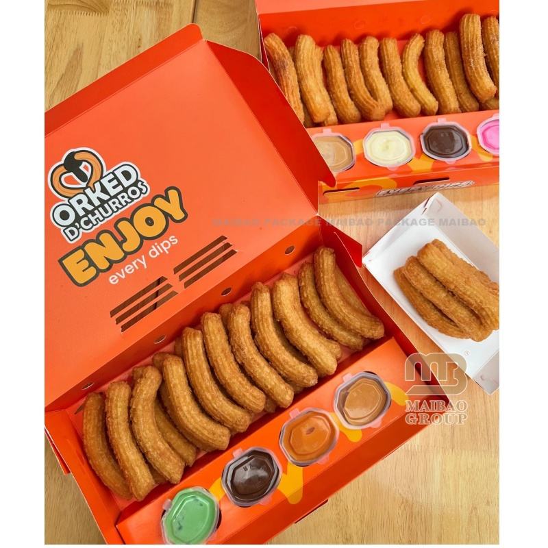 กล่องใส่กระดาษแบบใช้แล้วทิ้งเกรดอาหารกล่องเชอร์โรอบร้อนย่อยสลายได้ตามต้องการ