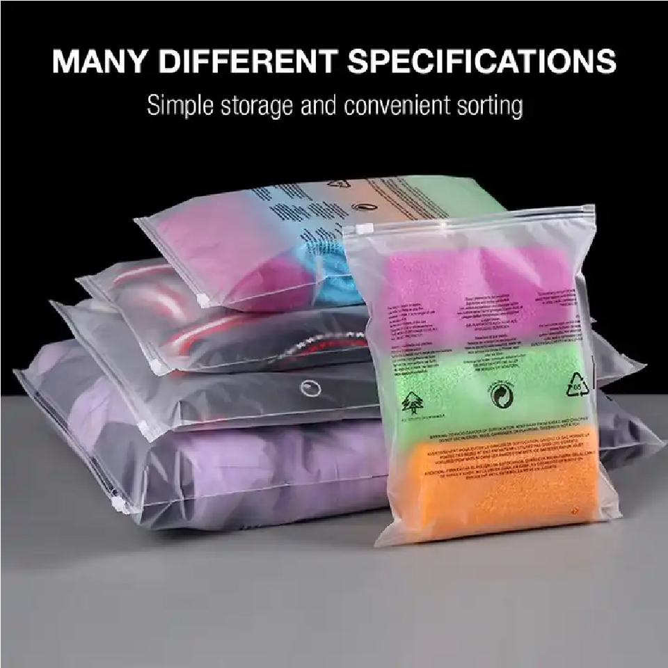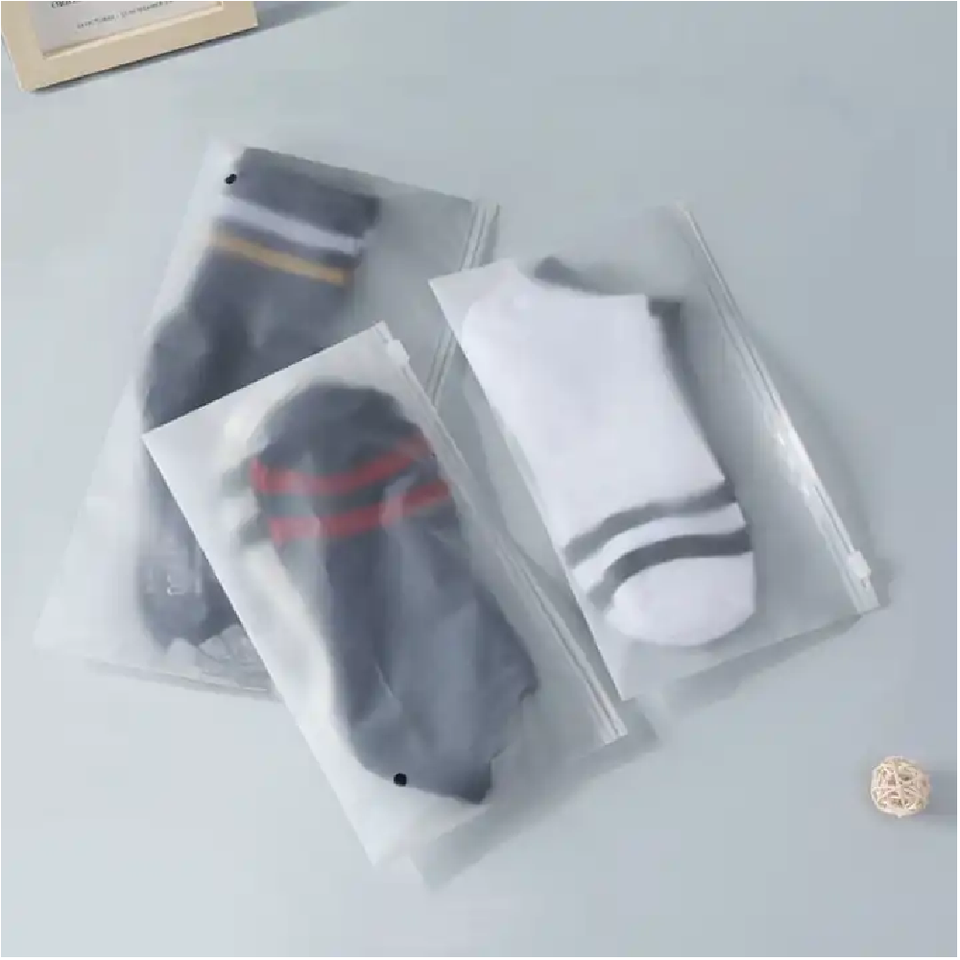 ถุงซิปล็อคพลาสติกฝ้าแบบกำหนดขนาดเองเป็นมิตรกับสิ่งแวดล้อมถุงปิดผนึกความร้อนเสื้อผ้าถุงเท้าร้านจัดส่งโลโก้ของคุณ