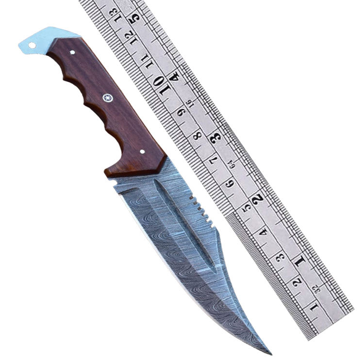 มีดสกินเนอร์ทำมือเหล็กดามัสกัสสำหรับล่าสัตว์และตั้งแคมป์ ด้ามไม้ ขนาดสั่งทำได้ ความหนา 4 มม. รุ่น S30 ZACSM รับผลิตแบบ OEM ปรับแต่งได้