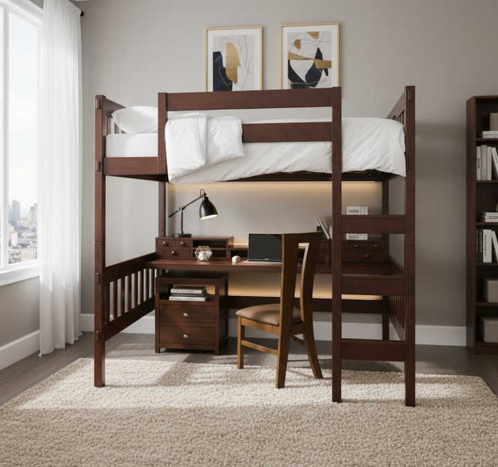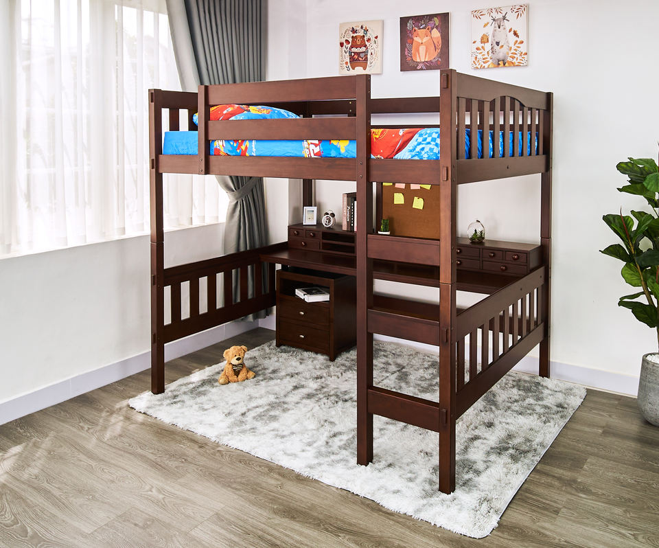 เตียงไม้สไตล์ฮิกกอรีสีกาแฟขนาดเต็มพร้อมโต๊ะโต๊ะสำหรับผู้ใหญ่จากเวียดนาม