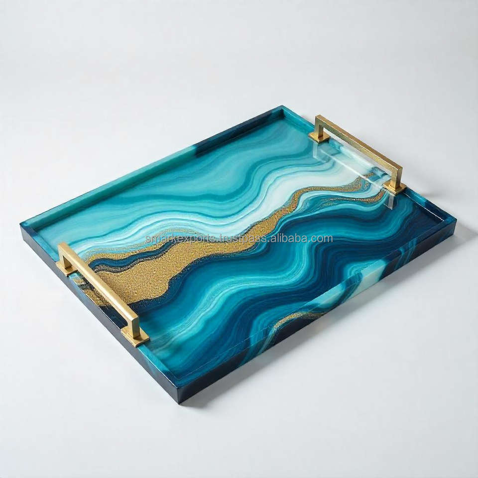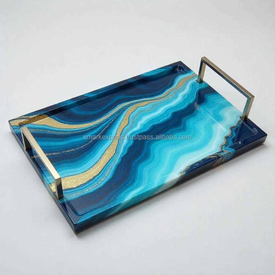ถาดเสิร์ฟเรซินขนาดใหญ่พร้อมด้ามจับโลหะเคลือบเงาทนทานสำหรับใช้ในบ้านห้องครัวหรืองานเลี้ยง