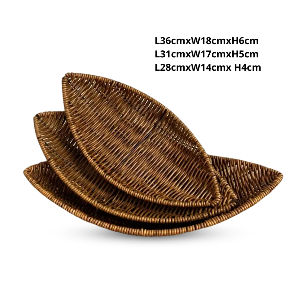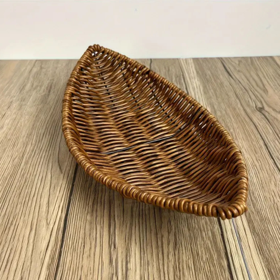 ตะกร้าหวายทรงใบไม้สำหรับเสิร์ฟอาหารเช้าตะกร้าใส่ของทรงสี่เหลี่ยมผืนผ้าแบบชนบทสำหรับใช้ในบ้าน