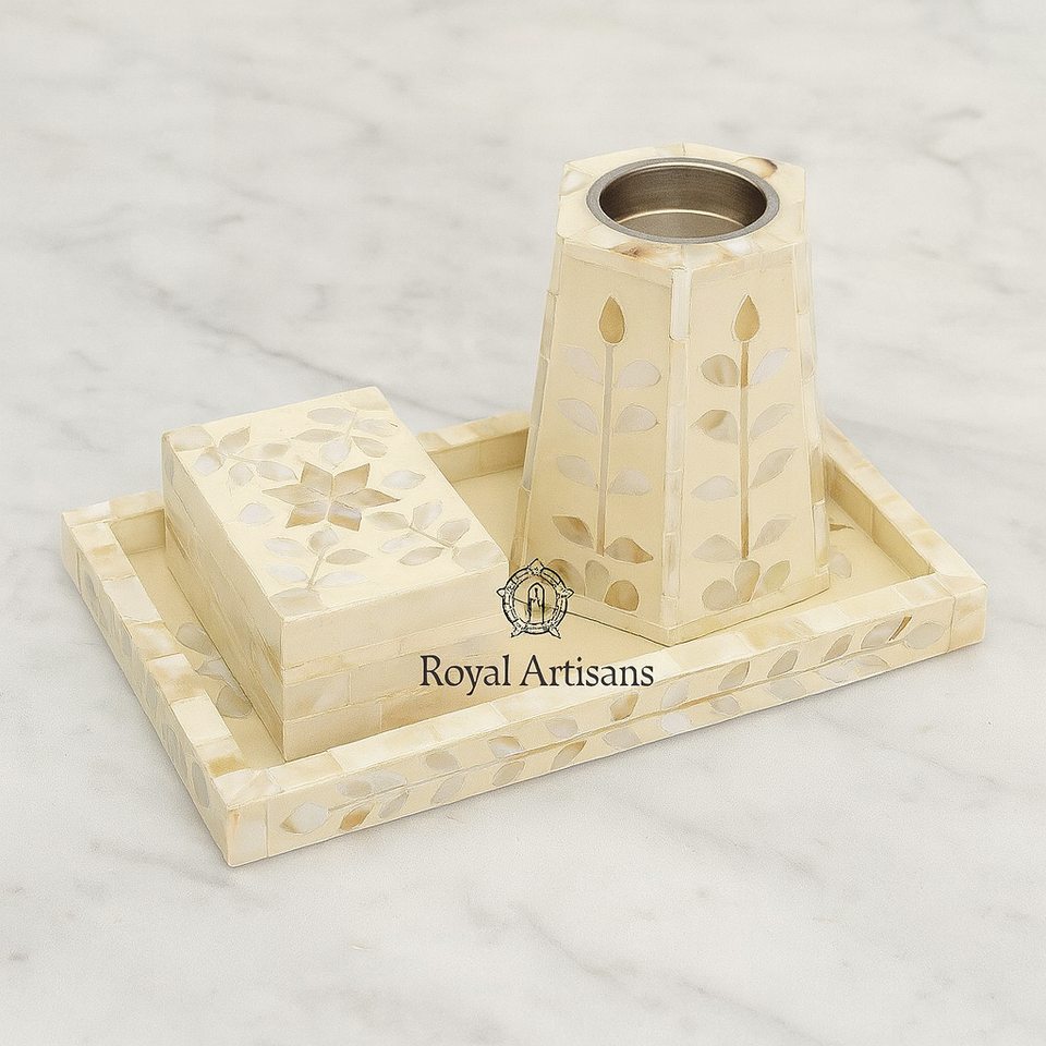 ชุดธูปไม้มุดคาร์แบบฝังมุกกล่องเรซินถาดเสิร์ฟเครื่องเผาเถ้ากระดูกสไตล์อาหรับ