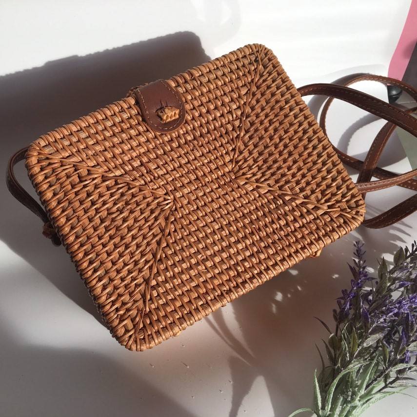 กระเป๋าหวายสานสะพายคาดลำตัวสำหรับผู้หญิง,กระเป๋าถือทรงสี่เหลี่ยมแบบกำหนดขนาดได้เอง