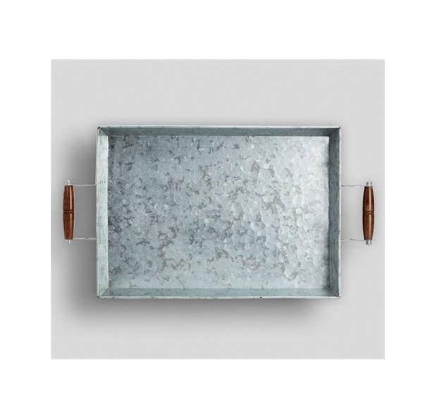 ถาดเสิร์ฟโลหะชุบสังกะสีทรงกลมและสี่เหลี่ยมพร้อมที่จับเหล็กสีดำสำหรับใช้ในบ้าน