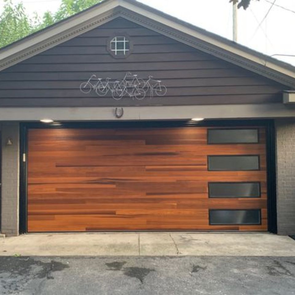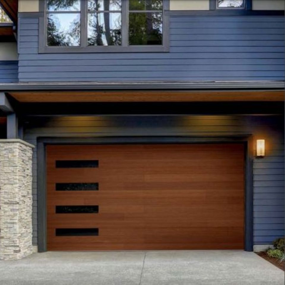 ประตูโรงรถไม้เนื้อแข็งหรูหราขนาดสั่งทำพิเศษ ประตูโรงรถแบบ sectional อัตโนมัติทันสมัยสำหรับบ้านพักตากอากาศ