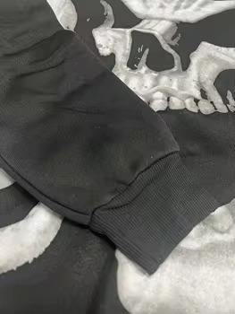 เสื้อฮู้ดพิมพ์ลายโครงกระดูกสไตล์โกธิคพังก์ สตรีทแวร์ วินเทจ สีดำฟอก ทรงโอเวอร์ไซส์ สำหรับผู้ชาย พิมพ์ลายหัวกะโหลก